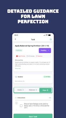 - Set up your custom lawn profile with details about your grass type, location, and soil conditions