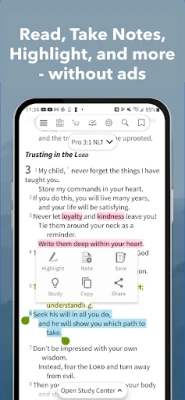 You can highlight and save your favorite passages, drop a book ribbon, create a note, add tags, and sign up to receive a daily Bible verse. Best part? Your highlights, notes, and resources sync between all your devices.