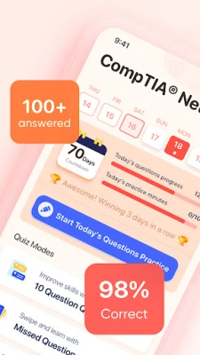 CompTIA® Network+ Prep 2025 is an exam preparation app that will help you pass the Network Engineer certification exam administered by the Computing Technology Industry Association (CompTIA) with a high score on your first attempt (code N10-009).