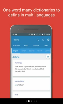 » Describe provide multiple dictionaries to define selected word ( Wordnet, Livio, Google, Wikitionary )