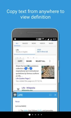 » Floating Notification: On copying word a floating button will shown on screen, click on that to redirect for full definition screen.