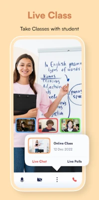 📝 Live Whiteboard: Collaborate and learn together using the Live Whiteboard feature. Teachers can share their screens and illustrate concepts in real time, fostering an engaging and immersive learning environment.