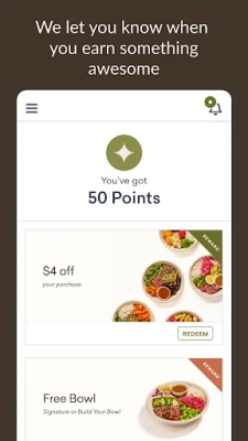 EARN REWARDS: Seamlessly earn points as you order online, through the app, or in the store. Redeem your points for delicious rewards in our Rewards Marketplace.