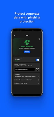 Your organization may enable a VPN in this app to safeguard devices from phishing and risky sites that can potentially compromise personal data.