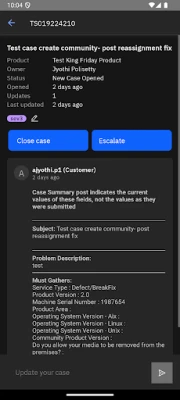 App Key Features: • Ability to see a list with the support cases opened by my company. • Ability to see selected case details, status, updates, who is working on it (ownership). • Ability to easily escalate my cases through my phone or tablet, including the possibility of receiving alerts and reaching out to Support Execs for urgent situations. • And there is more to come…