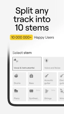 Our vocal remover is a perfect solution for those who want to create high-quality karaoke tracks, extract vocals, drums, piano and other instruments for remixes, mashups, and other creative projects on the go.
