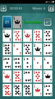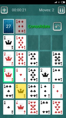 At the beginning in the game 25 cards are dealt to a 5x5 grid. Remaining cards are set aside forming a stock pile. Two cards of same rank can be discarded to the waste pile if they are placed next to each other horizontally, vertically or diagonally. Discarding cards creates gaps in the grid. After removing all matching pairs, remaining cards can be condensed in the grid (moved left and then up) so that all gaps are moved to the end. Empty gaps can be filled with cards from the stock pile.