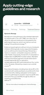 Actionable treatment insights: Get AI-powered insights to help you make enhanced clinical decisions by applying the latest cancer guidelines and research to your patients’ data