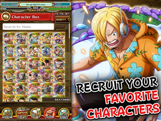 • Seven Warlords of the Sea, Blackbeard Pirates, Marines and more – Recruit a pirate crew & build your team!