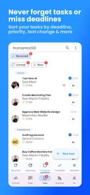 • Send tasks within a couple of seconds: Creating and sending tasks is as easy as sending a message.