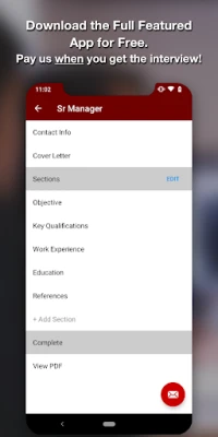 That's right, this is not a cut-down, limited free edition. It's the FULL-FEATURED App, and the best one you can buy. There are no annoying ads, or gotcha limits on creating and sending resumes. It has everything you need to score that interview.