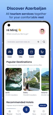 Download our app now and unlock a unique travel booking experience. Find your perfect stay and embark on unforgettable adventures worldwide! Currently available in Azerbaijan, expanding to global coverage soon.