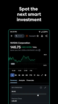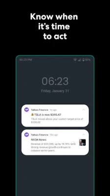 • Enable notifications for price alerts, breaking news, earnings reports, and more